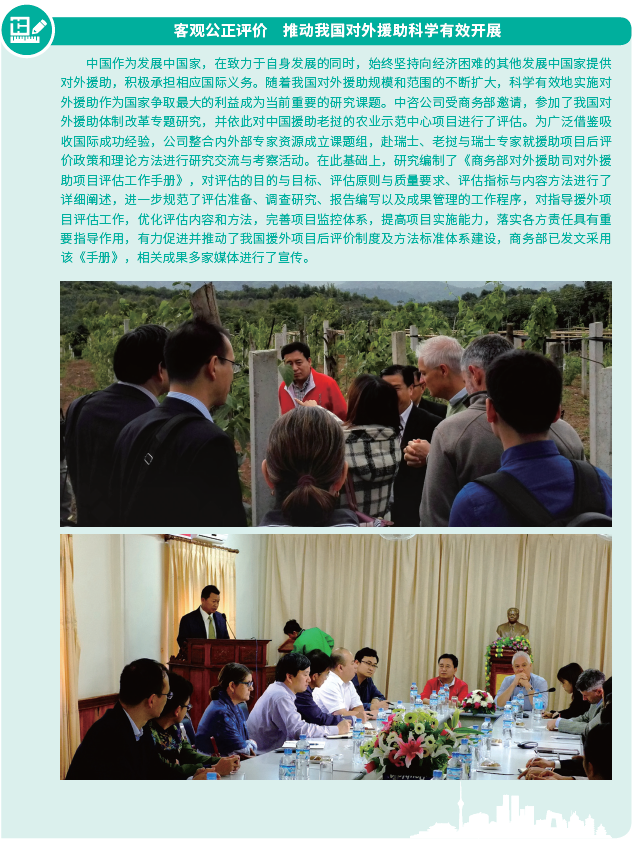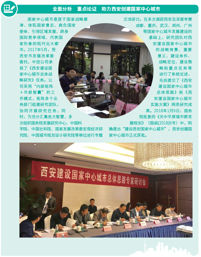 2016年以来,中咨公司围绕“一带一路”、战略性新兴产业、京津冀城市群发展、脱贫攻坚等一系列涉及国 计民生的热点难点问题开展宏观研究,研究成果多以报告的形式上报党中央国务院,为中央领导提供了重要的决策参考。其中,《食品安全问题与对策研究报告》《自主核电技术发展战略研究》分别获得国家发展改革委优秀研究成果二等奖、三等奖。