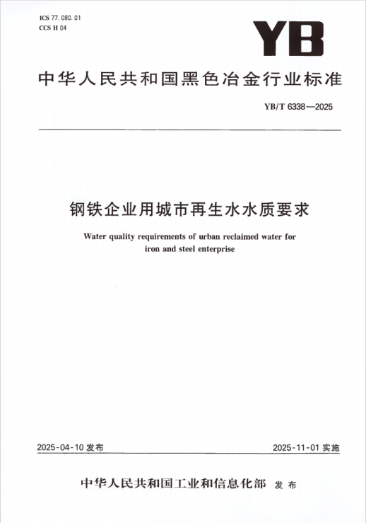 半岛网页版中国有限公司参与编制的行业标准YB/T 6338-2025《钢铁企业用城市再生水水质要求》于2025年11月1日正式实施。(参编人员:张建红)