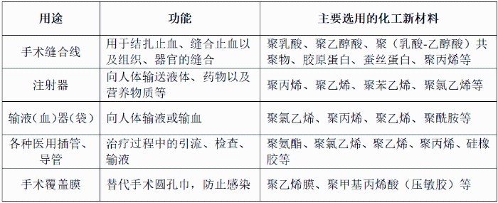 生物医药领域用化工新材料发展趋势研究 申传龙 刘文胜 齐景丽 摘要:生物医药产业是关系国计民生和国家安全的战略性新兴产业。化工新材料在药品、生物制品、医疗器械等生物医药产品制造多个关键环节发挥着不可替代的作用,是支撑生物医药产业高质量发展的核心基础之一。当前,全球生物医药产业规模持续扩大,我国已初步形成较为完整的产业体系,但仍存在部分关键材料高度依赖进口的问题,制约了产业自主可控能力和供应链安全。为突破这一瓶颈,必须坚持“以应用为导向”的研发创新模式,构建“产学研用”深度融合的协同创新体系,重点突破关键材料技术瓶颈,加快推进国产化替代进程,努力实现该领域自主可控,为生物医药产业的高质量发展提供坚实保障。 一、发展生物医药领域化工新材料的重要意义 生物医药领域材料广义上包含药品、生物制品、医疗器械等生物医药产品本身及其生产加工过程中所用到的所有材料,涵盖生产设备及其零部件、原辅料、包装材料等。按成分可分为高分子材料(化工新材料)、金属材料、无机非金属材料、复合材料。 生物医药领域化工新材料是生物医药产业与高分子材料产业交叉融合的高阶产业,具有技术密集、附加值高、产业关联度强等特点,同时也是该领域应用最广泛的一类材料,约占该领域市场规模总量的三分之一。在政策支持、技术革新、人口老龄化、医疗消费升级等因素的驱动下,我国生物医药领域化工新材料市场规模将持续保持高速增长。发展生物医药领域化工新材料产业,对提升国家医疗健康水平、保障产业链供应链安全、推动经济高质量发展具有重大战略意义。 (一)构建健康中国的核心支撑 随着人口老龄化加剧和健康意识提升,心脑血管疾病、肿瘤、糖尿病等慢性病发病率持续上升,对生物医药领域高端化工新材料的需求日益增长。研发和推广具有优异生物相容性、功能性以及可定制化的高端化工新材料,不仅有助于提升疾病预防、诊断和治疗水平,还能降低医疗成本,显著改善患者生活质量。这既是应对重大公共卫生挑战的关键举措,也是实现“健康中国2030”战略目标的重要支撑。 (二)筑牢产业链安全的战略屏障 我国生物医药领域高端化工新材料进口依赖度高达60%以上,关键材料如医用级超高分子量聚乙烯(UHMWPE)、环烯烃共聚物(COC)、聚乳酸(PLA)、色谱填料专用树脂、生物反应器膜材等严重依赖进口。发展自主可控的生物医药领域化工新材料,是应对国际供应链波动、提升产业韧性的必然要求。特别是在公共卫生事件频发的背景下,保障医用材料供应已成为国家安全的重要组成部分。 (三)驱动经济高质量发展的新引擎 生物医药领域化工新材料产业是化工行业转型升级的重要引擎。发展该领域新材料,可推动上游石化原料向下游高附加值功能高分子材料及高端生物医药产品延伸转化,形成新的经济增长点。同时,材料创新也将推动药品、生物制品、医疗器械制造及健康服务等关联产业升级,助力经济结构优化与高质量发展。 (四)抢占全球科技制高点的关键领域 生物医药领域化工新材料是多学科交叉的典型领域,融合化学、物理、材料、生物、医学、药学等多个学科。加强该领域的技术攻关,不仅能够推动材料科学自身进步,还能带动相关装备制造、工艺技术、标准体系的整体提升,建立涵盖材料性能、生物安全性、临床评价的全链条标准体系,增强我国在全球生物医药产业中的话语权和竞争力。 二、生物医药领域化工新材料重点应用领域和产品发展现状 (一)重点应用领域 1.高值医用耗材领域 高值医用耗材是指那些对使用安全具有极高要求、生产和使用必须严格控制、仅限于特定专科使用且价格相对较高的消耗性医疗器械,主要包括心脏介入、外周血管介入、人工关节以及其他脏器介入治疗替代等医用材料。 (1)血管介入器械 血管介入器械是指在医学影像设备的导引下,通过穿刺针、导丝、导管等工具,经血管途径对心血管、脑血管和外周血管修复或替换治疗的医疗器械,这类器械广泛应用于冠脉介入、外周血管介入及神经介入等领域。我国血管介入器械行业市场规模已达600亿元,其中心血管介入器械占比高达85%,成为市场的主要驱动力。 (2)骨科植入物 骨科植入物是指用于骨骼替代、支撑、修补和填充的临床骨科医疗材料。随着我国人口基数庞大及老龄化加剧,骨科耗材需求持续增长。当前我国骨科植入医疗器械市场规模约为300亿元,预计未来5年将保持约15%的复合增长率。 图1 骨科植入材料 (3)血液净化耗材 血液透析是急慢性肾衰竭、终末期肾病(尿毒症)患者的最主要治疗方式,通过透析机以及透析器、透析液(粉)等医疗器械,辅助或替代患者肾脏的部分功能,帮助清除体内的代谢废物和多余水分。在血液净化耗材中,血液透析膜是最为广泛应用的核心耗材,其性能直接影响透析效果和患者安全性。目前,我国血液透析市场规模约为300亿元。 图2 血液透析膜及聚醚砜原料 (4)眼科耗材 产品主要包括人工晶状体、人工视网膜、人工玻璃体、人工泪管、人工角膜以及硬性角膜接触镜等。眼科耗材对材料性能和加工技术的精细化程度要求极高,直接关系到产品的生物相容性、光学性能和机械强度等关键指标。目前,我国眼科高值医用耗材市场规模约为120亿元,且随着