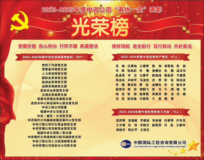 6月30日,中咨公司隆重召开庆祝中国共产党成立104周年暨“七一”表彰大会,对过去两年在推进公司党的建设和改革发展进程中涌现的先进典型进行表彰,进一步激励各级党组织和广大党员不忘初心、牢记使命,为公司加快建设国家高端智库和世界一流咨询机构作出新的更大贡献。 公司党委副书记、董事、总经理郭铭群出席会议并讲话,受公司党委书记、董事长苟护生委托,代表公司党委,向受到表彰的先进集体和个人表示诚挚的祝贺、向奋战在公司各条战线的广大党员干部职工致以节日的问候,并对各级党组织和党员同志提出要求和期待。会议由公司党委副书记、工会主席朱岚主持,党委委员、总会计师王丽静宣读公司党委关于表彰2023—2025年度“两优一先”的决定,公司领导潘小海、沈浩、刘富荣、李开孟参加会议。 郭铭群在讲话中指出,公司各级党组织和广大党员干部职工坚持以习近平新时代中国特色社会主义思想为指导,以开展深入贯彻中央八项规定精神学习教育为动力,聚焦主责主业、把准功能定位,为党和国家有关重大战略、重大规划、重大工程和重大投资政策实施提供了重要智力支撑,并在实践中深刻认识到:必须始终把党的事业放在心中最高位置,把“两个维护”印刻在脑海里、落实到行动上,牢记“党之大计”、胸怀“国之大者”、助建“国之重器”,以更高站位、更高水平、更高质量服务党和国家科学决策。 郭铭群强调,公司各级党组织要扛起主体责任,锻造坚强堡垒,全体党员要以党性立“智”、以清风润“咨”,进一步坚定发展信心、保持发展定力、抢抓发展机遇,齐心协力谱写公司高质量发展新篇章。锐意改革攻坚、埋头苦干实干,不折不扣落实公司“五五战略”和“3510”策略,以破解发展难题、提升管理效能、防范化解风险的担当和作为彰显党性;坚持从群众中来、到群众中去,着力解决职工急难愁盼问题,在开展政策研究和咨询服务过程中站稳人民立场,以用心用情办实事的行动和成效彰显党性;从严从实加强作风建设,以开展深入贯彻中央八项规定精神学习教育为契机,不断提高拒腐防变能力,永葆党员政治本色,在共同营造风清气正干事创业良好政治生态中彰显党性。 大会共表彰了20个“先进基层党组织”、47名“优秀共产党员”和15名“优秀党务工作者”。公司领导为受表彰的先进集体和个人颁奖。能源业务部李德波、中咨工程公司牛博、中咨海外公司苏宝健代表获奖集体和个人作交流发言。 朱岚在主持讲话中指出,公司全体党员要以先进为标杆,以典型为榜样,弘扬伟大建党精神,进一步提高政治站位、强化政治担当,坚定奋斗意志、坚定恒心韧劲,永远保持共产党员的激情和荣耀,攻坚克难完成年度各项目标任务,以实干实绩为党旗增光添彩。 会议采取线上线下相结合的方式召开。公司总部部门副职及以上管理人员和相应层级专业职级人员、在京所属企业班子成员和获奖代表在现场参会。公司总部处级干部和相应职级人员、京外所属企业班子成员以及各所属企业党员代表线上参会。 | |||||